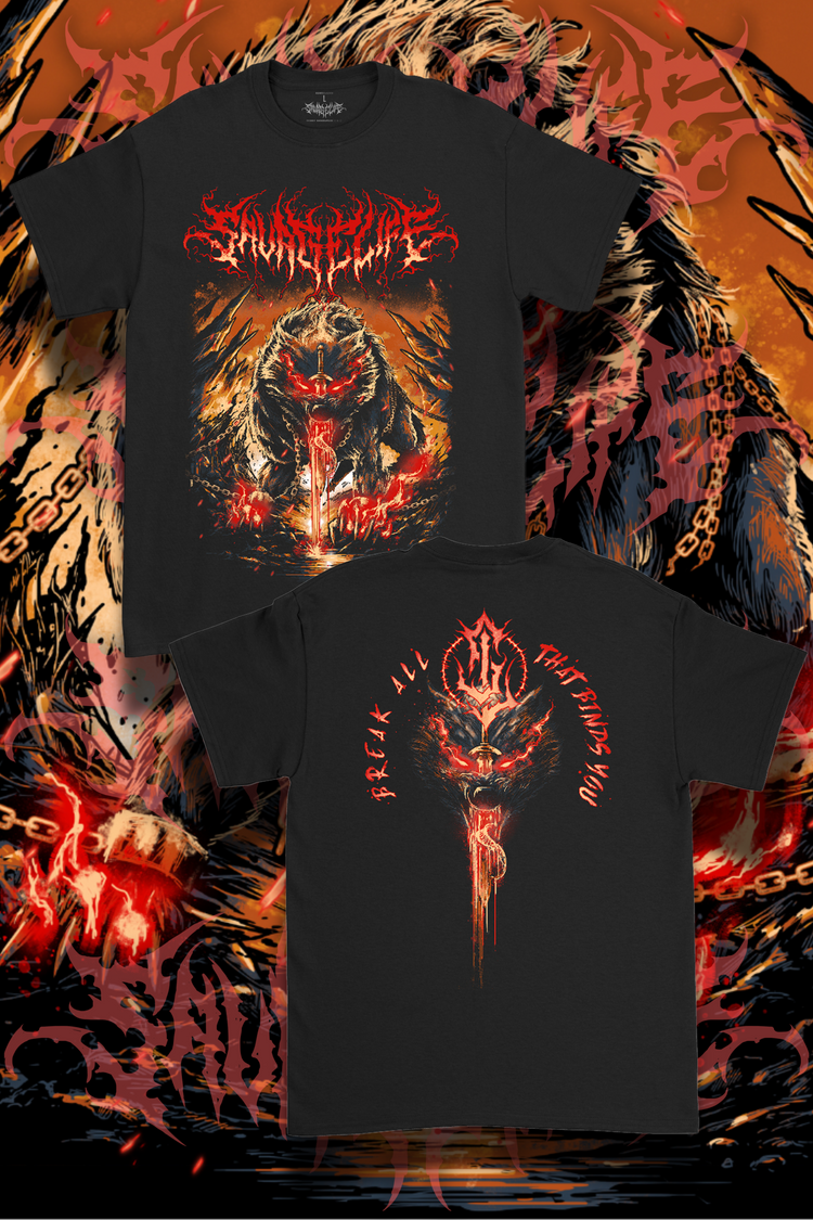 T-Shirts: Featuring detailed illustrations of Odin, Fenrir, and Hel, each shirt is crafted from 100% ringspun cotton, ensuring comfort and durability. The back designs, including phrases like "What's Your Sacrifice?", "Break All That Binds You," and "Living to Die, Dying to live' to reinforce the powerful narratives.